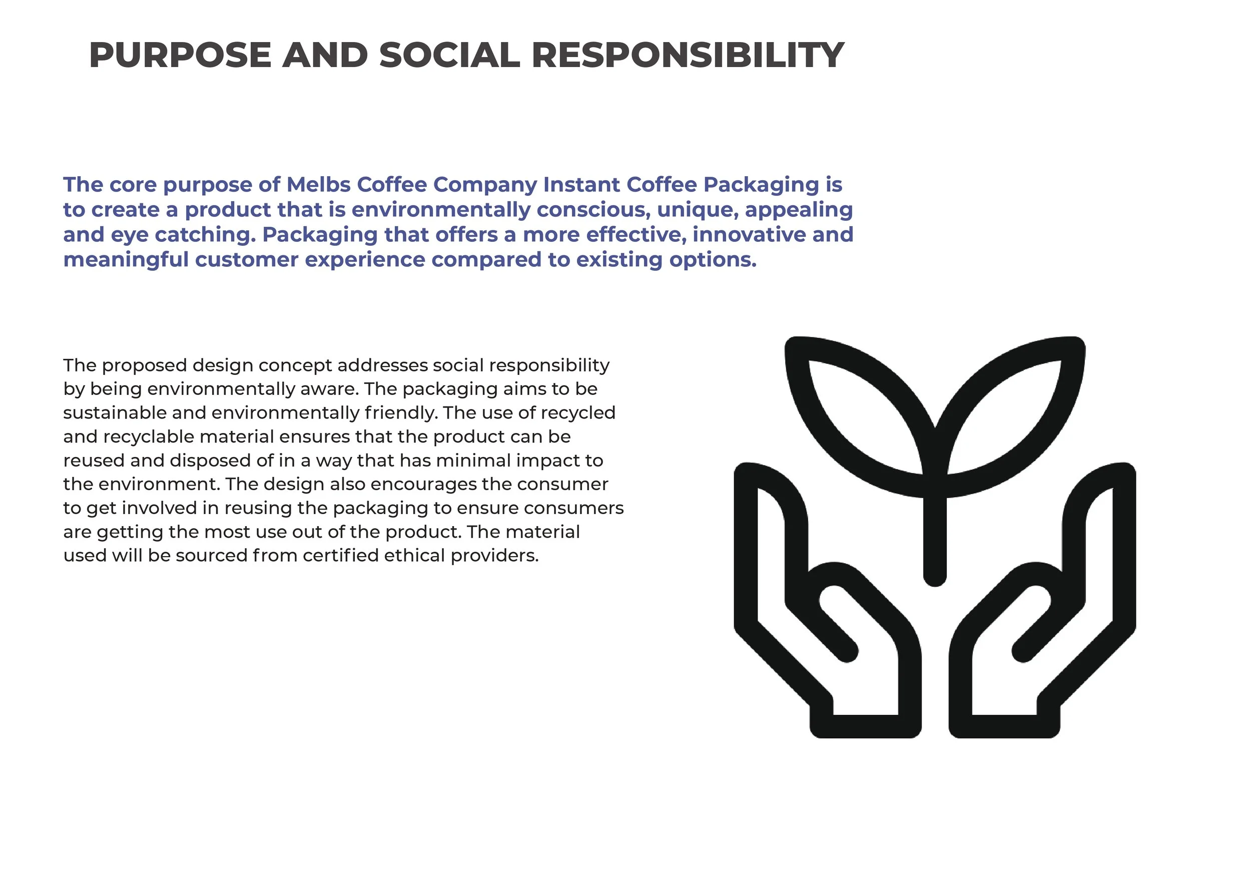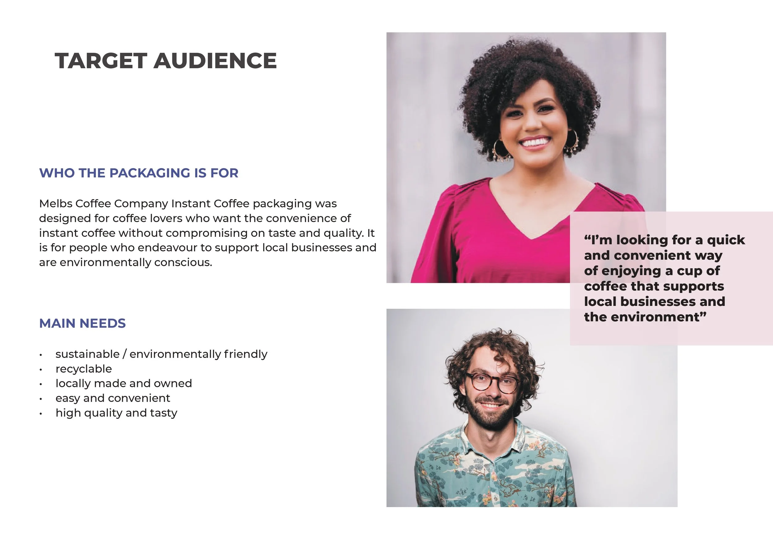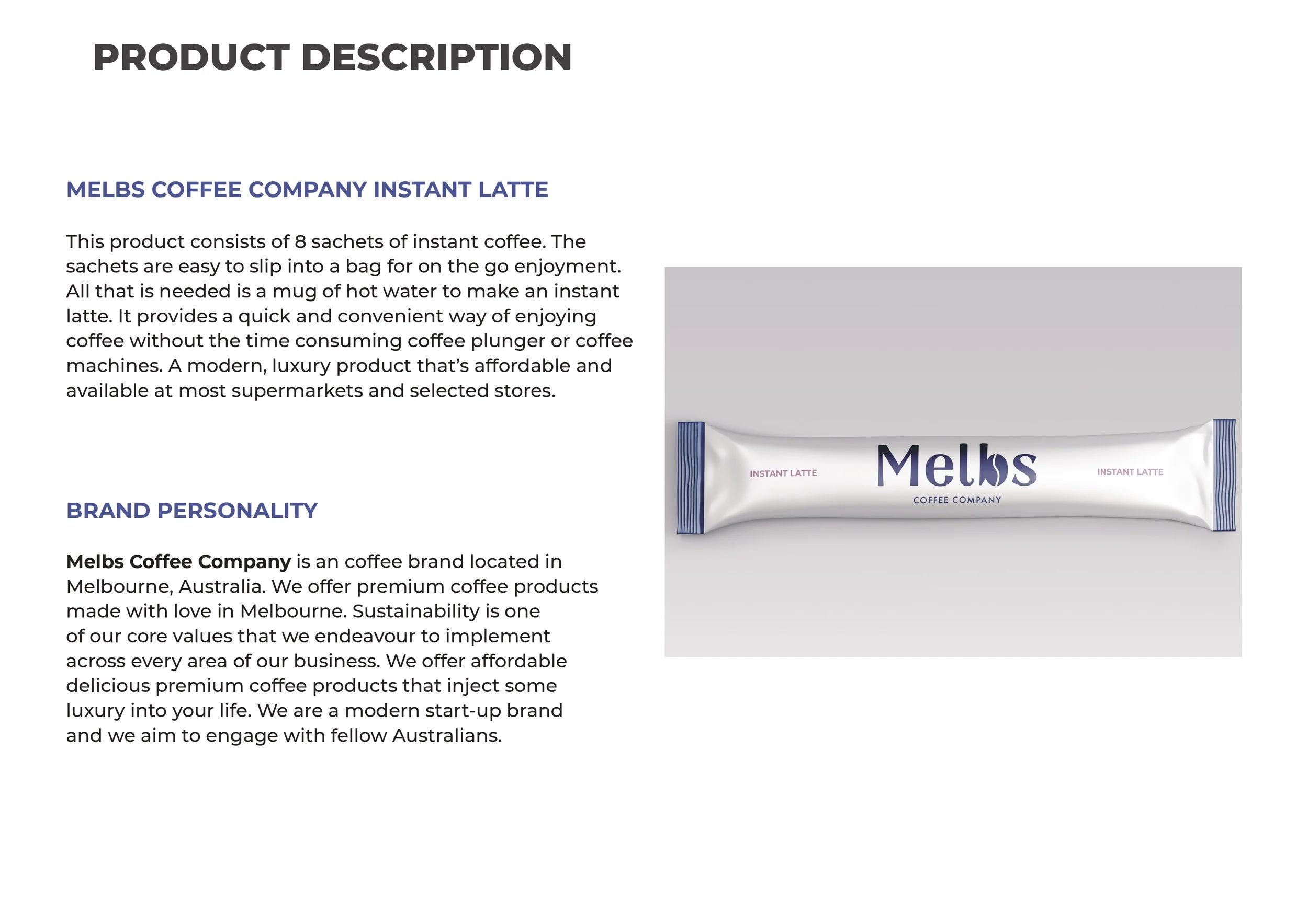 DESCRIPTION / Melbs Coffee Company is a brand I designed for coffee lovers. The core purpose of the packaging was to create a product that is environmentally conscious, unique, appealing and eye-catching. It offers a more effective, innovative and meaningful customer experience compared to existing options. I created a full brand identity with an accompanying style guide. Scroll through the slides below for a look at the final pitch presentations.