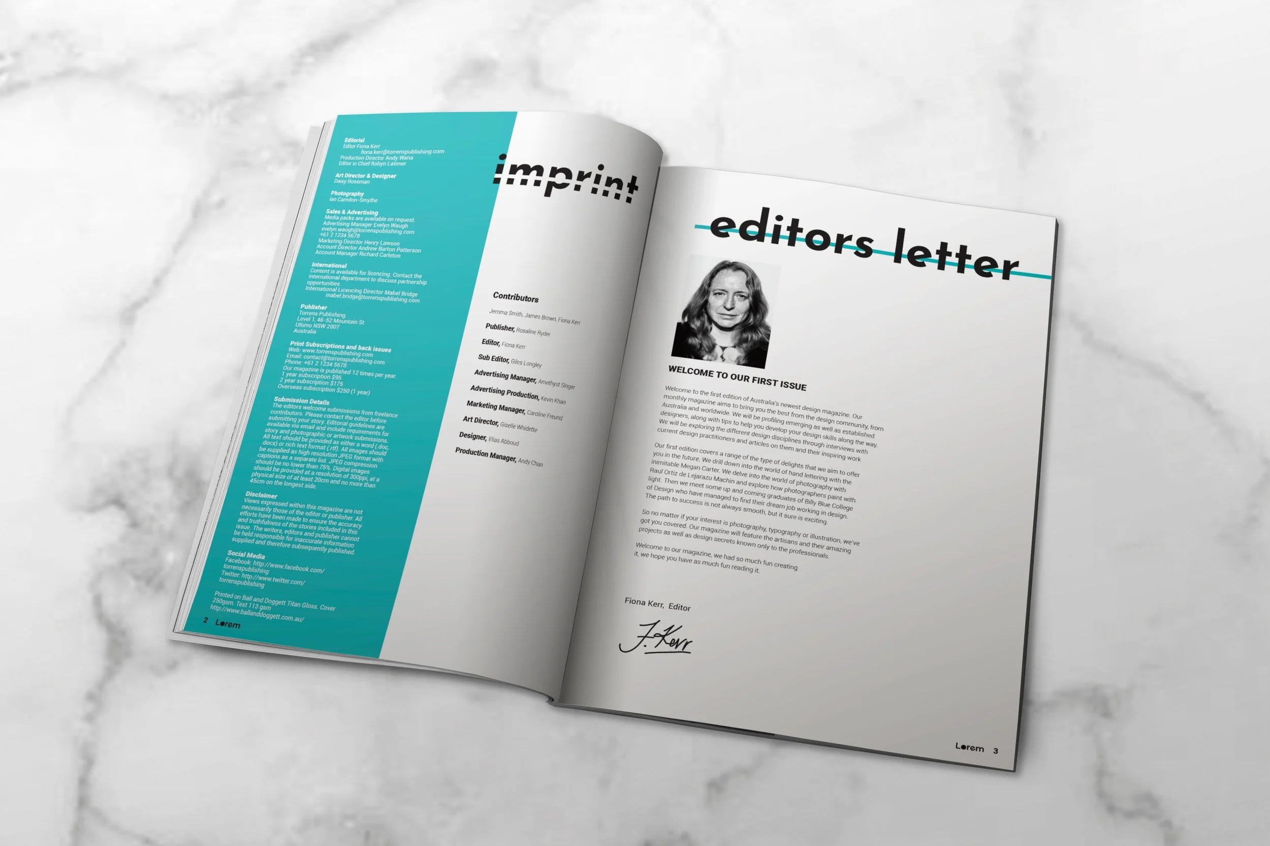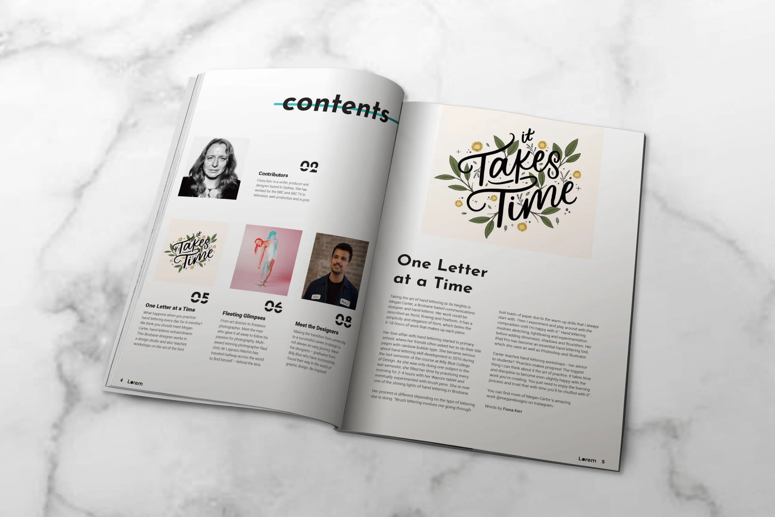 BRIEF / Create a multi-page print ready and interactive PDF magazine. Create an original brand with a unique brand identity.